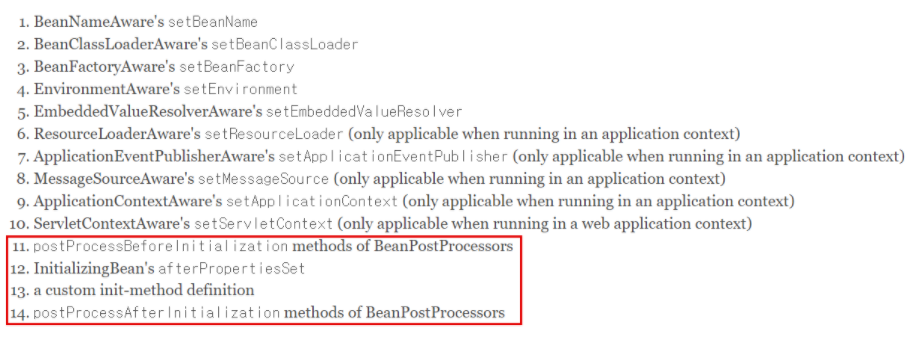 빈의 인스턴스가 만들어지는 라이프사이클(LifeCycle)이 있는데,